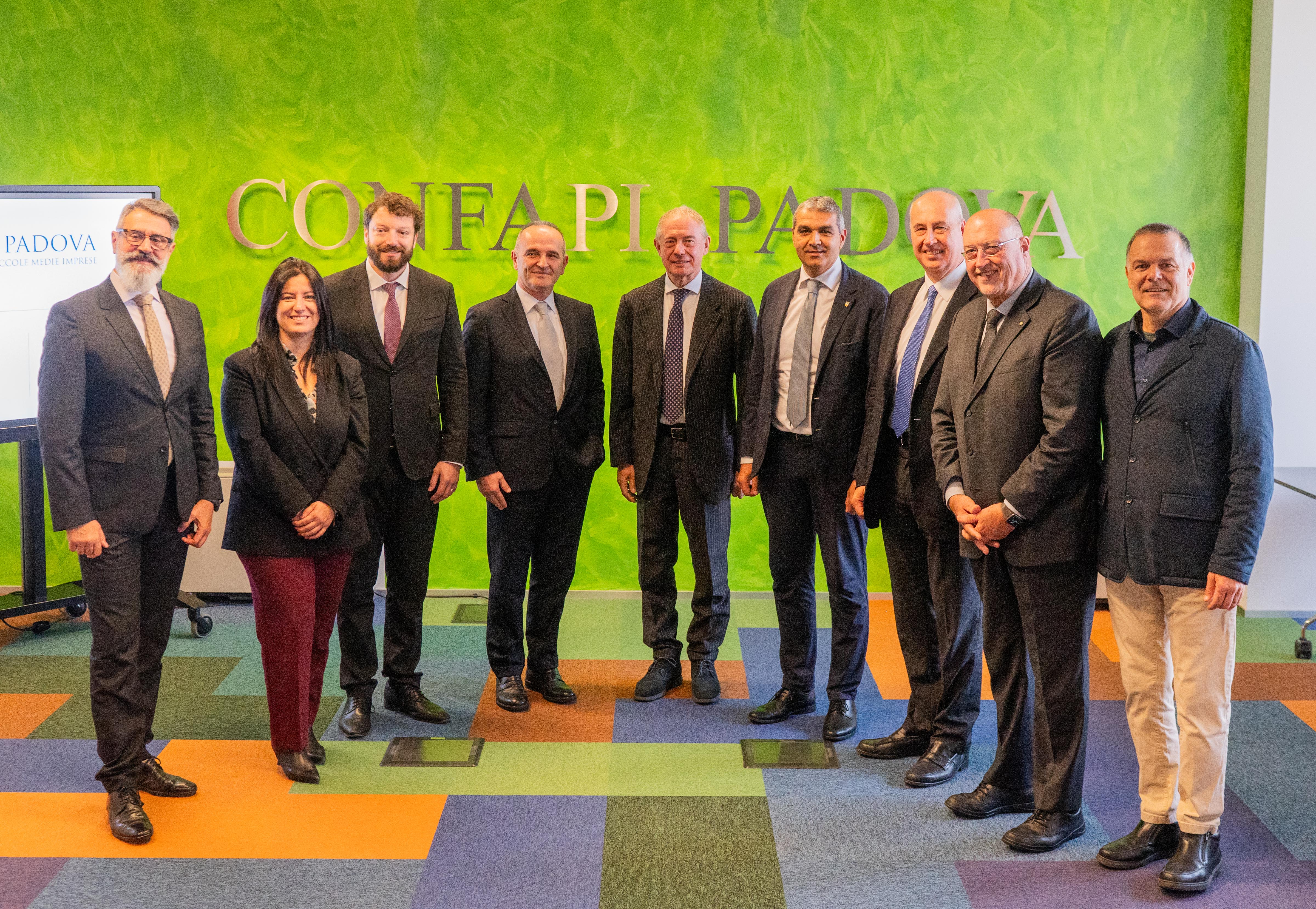 Il Ministro delle Imprese e del Made in Italy Adolfo Urso ha raccolto la sfida lanciata dalle piccole e medie industrie padovane: il governo è al lavoro per estendere la Zona Logistica Semplificata alla provincia di Padova. Accompagnato dal Vice Presidente del Consiglio Regionale Enoch Soranzo, il Ministro ha incontrato il Presidente di Confapi Padova Marco Trevisan e le aziende associate per approfondire i temi centrali legati alla competitività industriale del territorio e per un confronto diretto sulle proposte avanzate dall’Associazione. Si è trattato di un momento di dialogo diretto con le piccole e medie imprese, cuore del tessuto economico padovano, che hanno illustrato al ministro le proprie priorità e le proposte per favorire competitività e investimenti.