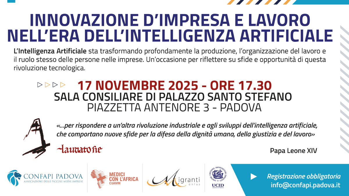 Confapi Padova rinnova l’invito a tutti gli interessati a prendere parte a questo momento di confronto e approfondimento, nella convinzione che l’innovazione tecnologica debba essere guidata da valori umani e da una visione inclusiva del progresso.