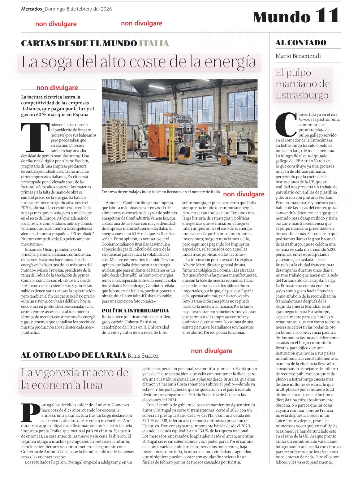 LA SOGA DEL ALTO COSTO DE LA ENERGIA - LA VOX DE GALICIA, 8 FEBBRAIO 2026
