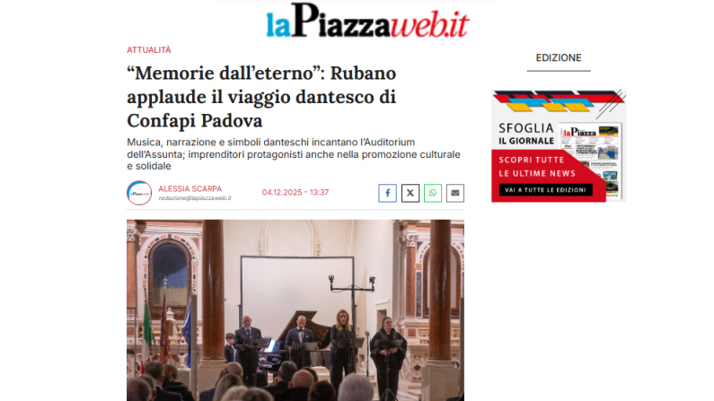 “MEMORIE DALL’ETERNO”: RUBANO APPLAUDE IL VIAGGIO DANTESCO DI CONFAPI PADOVA - LA PIAZZA WEB, 4 DICEMBRE 2025