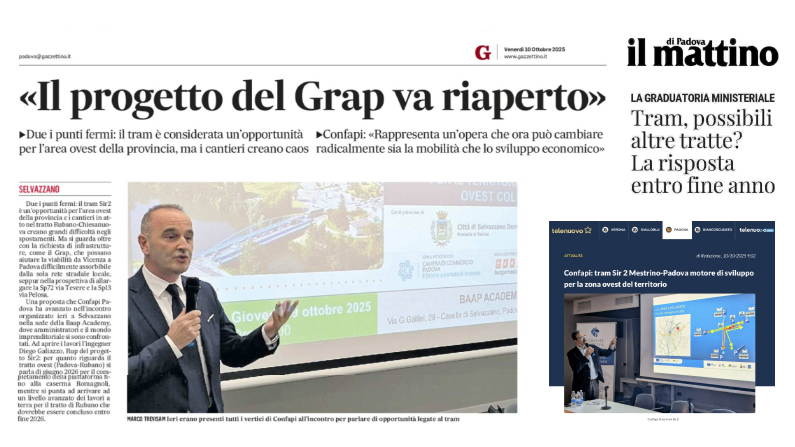 TRAMVIA PADOVA-MESTRINO, LA PROPOSTA DI CONFAPI: «RIAPRIRE SUBITO IL PROGETTO DEL GRAP» - PADOVAOGGI 10 OTTOBRE 2025