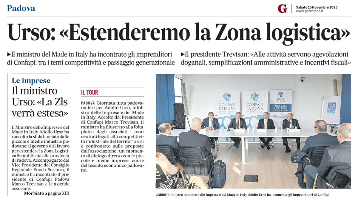 URSO DALLE PICCOLE E MEDIE IMPRESE: «IL CUORE PULSANTE DELL’IDENTITÀ PRODUTTIVA DEL MADE IN ITALY» - PADOVAOGGI, 15 NOVEMBRE 2025