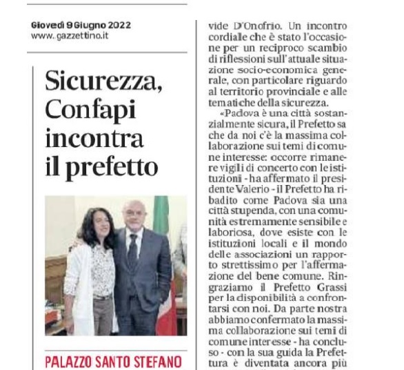 Leggi l'articolo: SICUREZZA: CONFAPI INCONTRA IL PREFETTO - IL GAZZETTINO DI PADOVA, 9 GIUGNO 2022